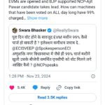 ఈ సందర్భగా వారు చేసే ఆరోపణలకు చూపించే ఆధారాలు ఆసక్తికరంగా ఉంటున్నాయి! ఈ క్రమంలో తాజాగా మహారాష్ట్రలో జరిగిన ఎన్నికల కౌంటింగ్ నేడు జరుగుతున్న సంగతి తెలిసిందే. ఈ సమయంలో ఈవీఎం మెషిన్స్ పై మరోసారి సంచలన వ్యాఖ్యలు చేశారు అనుశక్తి నగర్ ఎన్సీపీ (ఎస్పీ) అభ్యర్థి ఫహద్ అహ్మద్ భార్య,నటి స్వర భాస్కర్.