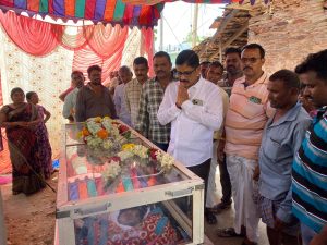👉నివాళులు అర్పించిన గిద్దలూరు ఎమ్మెల్యే సోదరుడు..*బెస్తవారిపేట మండలం, గొట్టంమిల్లు గ్రామానికి చెందిన గొట్టం నాగరాజు ఉత్తరప్రదేశ్ లో జరిగిన ప్రమాదంలో మరణించగా, వారి మృతి పట్ల గిద్దలూరు ఎమ్మెల్యే సోదరుడు, టీడీపీ నాయకులు ముత్తుముల కృష్ణ కిషోర్ రెడ్డి వారి భౌతికకాయానికి పూలమాల వేసి నివాళులు అర్పించారు. వారి కుటుంబ సభ్యులను పరామర్శించి తన ప్రగాఢ సానుభూతిని తెలియచేశారు.. వారితో పాటు రాష్ట్ర ఎడ్యుకేషన్ & వెల్ఫేర్ డైరెక్టర్ గోనా చెన్నకేశవులు స్థానిక నాయకులు గొట్టం ప్రసాద్, షేక్ సుల్తాన్ తదితరులు నివాళులు అర్పించారు..*