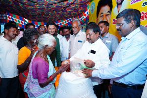 మొంథా తుఫాను బీభత్సం కారణంగా సర్వం కోల్పోయి, తీవ్రంగా ప్రభావితమైన ఓ బాధితుడికి ప్రకాశం జిల్లా, తర్లుపాడు మండల తహసీల్దార్ కేకే కిషోర్ కుమార్ మానవతా దృక్పథంతో చేయూతనిచ్చి ఆదుకున్నారు. తర్లుపాడు మండల కేంద్రంలోని పునరావాస కేంద్రంలో ఆశ్రయం పొందుతున్న బాధితుడికి ఆయన స్వయంగా నిత్యావసర సరుకులు పంపిణీ చేశారు.మానవత్వంతో స్పందించిన తహసీల్దార్ .. పునరావాస కేంద్రంలో ఆశ్రయం పొందుతున్న గుంటు యేసు అనే బాధితుడి పరిస్థితి తెలుసుకున్న తహసీల్దార్ కేకే కిషోర్ కుమార్, వెంటనే సహాయక చర్యలు చేపట్టారు. ఆయన స్వయంగా పునరావాస కేంద్రానికి వెళ్లి బాధితుడిని పరామర్శించి, అతనికి కావాల్సిన సరుకులు 25 కేజీల బియ్యం (రైస్) నిత్యావసర సరుకులు (పప్పులు, నూనె, ఉప్పు వంటివి)కూరగాయలుతహసీల్దార్ కె కె కిషోర్ కుమార్ అందజేశారు తహసీల్దార్ అందించిన ఈ చేయూత, తుఫాను కారణంగా నష్టపోయిన బాధితుడికి తక్షణ ఉపశమనాన్ని కలిగించింది. విపత్కర పరిస్థితుల్లో అధికారి చూపిన ఈ ఔదార్యం పట్ల స్థానికులు హర్షం వ్యక్తం చేస్తున్నారు ఈకార్యక్రమంలో లో రెవిన్యూ సిబ్బంది ఆర్ ఐ శ్రీ చరణ్, వి ఆర్ ఏ లు సిహెచ్ చెన్నయ్య, బి సుబ్బయ్య పాల్గొన్నారు